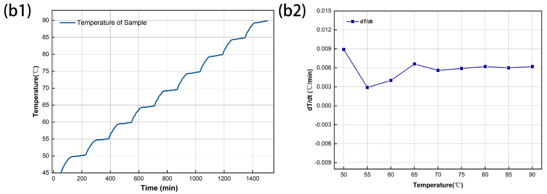 2) 臺階升溫步長控制在25℃及以下,增加恒溫臺階個數(shù)有利于提高校準(zhǔn)精度;