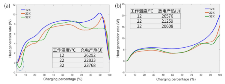 2. 不同溫度下電池充放電產熱功率