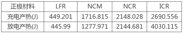 1. 不同正極材料電池充放電產熱功率