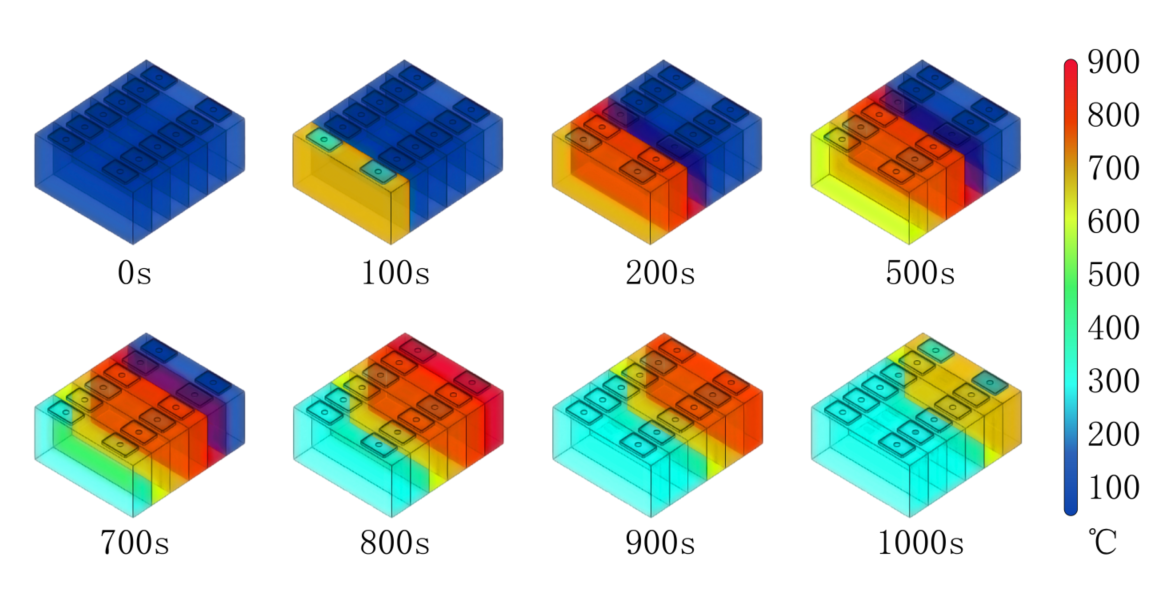 圖1 方形電池模組(簡化)溫度變化過程CFD仿真