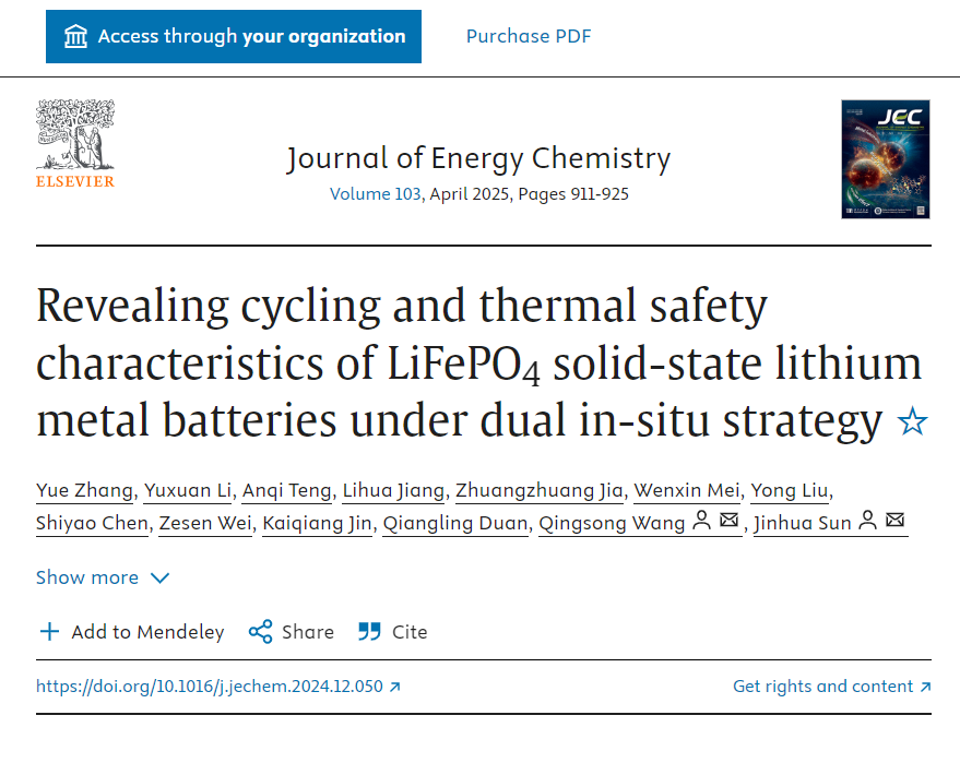 中國科學技術大學王青松教授團隊在Journal of Energy Chemistry(IF:14)發(fā)表題為Revealing cycling and thermal safety characteristics of LiFePO4 solid-state lithium metal batteries under dual in-situ strategy的論文,該成果由中國科學技術大學火災科學國家重點實驗室、廣東省重點領域研發(fā)計劃(2024B1111080001)、國家自然科學基金(52204248和52474258)和中國科學院青年創(chuàng)新促進會(Y201768)等機構聯(lián)合支持。
